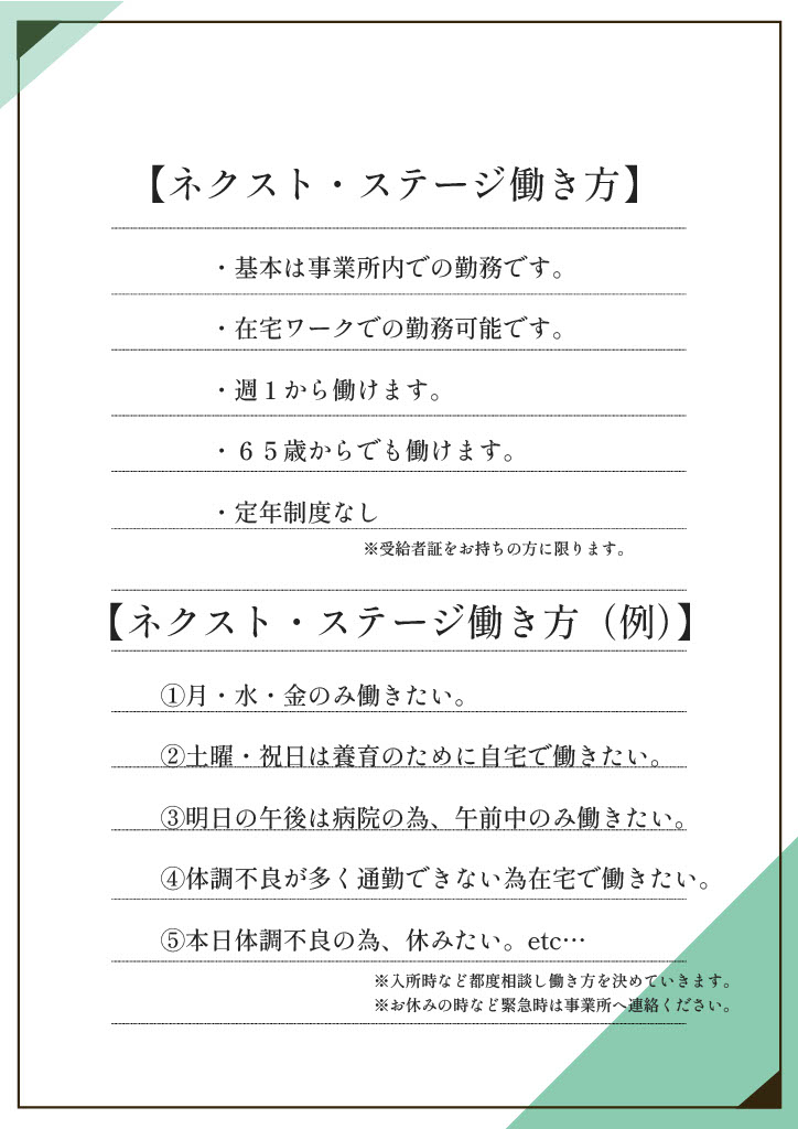 ネクスト・ステージは、働きたいけれど働けない障がい者や、住宅の老朽化に悩む方々を支援するために設立されました。